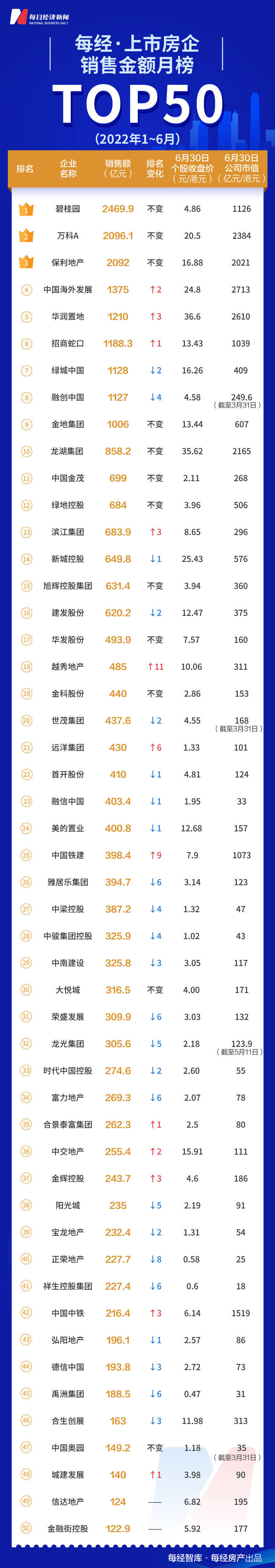 每经数读| 上半年首现回暖!TOP50房企6月销售环比大增70% 土地出让金年内最高
