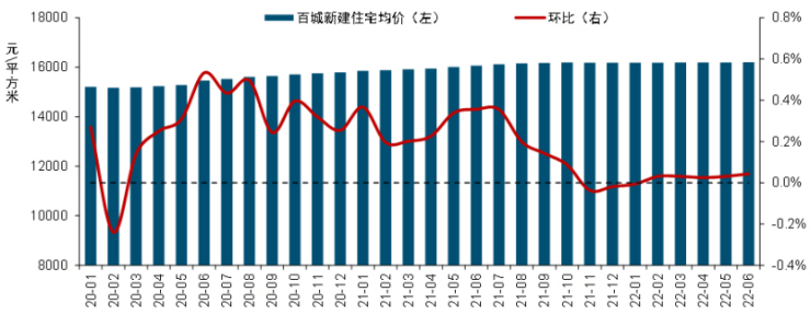 (2020年1月至2022年6月百城新建住宅均价及环比变化,中指研究院制表,央广网发)