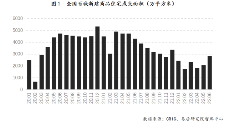 这一观点从5、6月的交易数据上也能佐证一二。根据中指研究院数据,2022年1-5月,全国商品房销售面积为5.1亿平方米,同比下降23.6%,商品房销售额为4.8万亿元,同比下降31.5%。5月,全国商品房销售面积、销售额同比降幅较4月分别收窄7.2和8.9个百分点,市场边际有所修复。初步统计,6月环比增幅在五成左右,同比降幅收窄至27%。易居研究院的数据则显示,6月全国百城新建商品住宅成交面积为2837万平方米,环比增长37%,同比下降34%,呈现“环比增速扩大、同比降速收窄”的良好态势,同时成为今年上半年成交最佳月份。