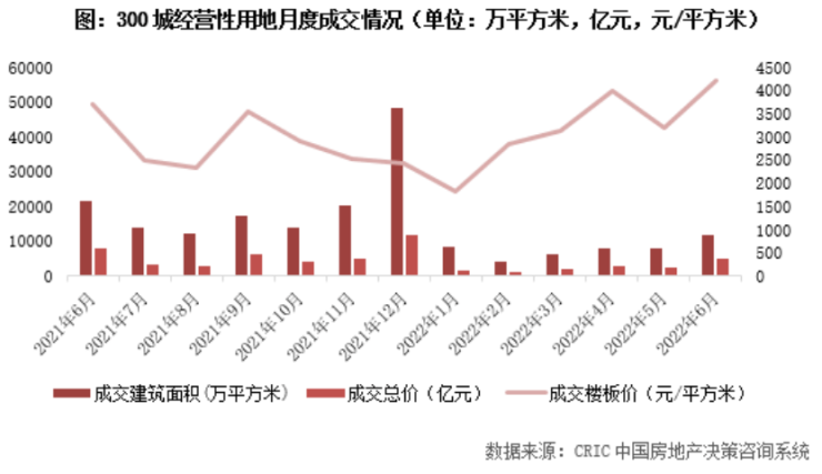 (300城经营性用地月度成交情况,克而瑞制图,央广网发)